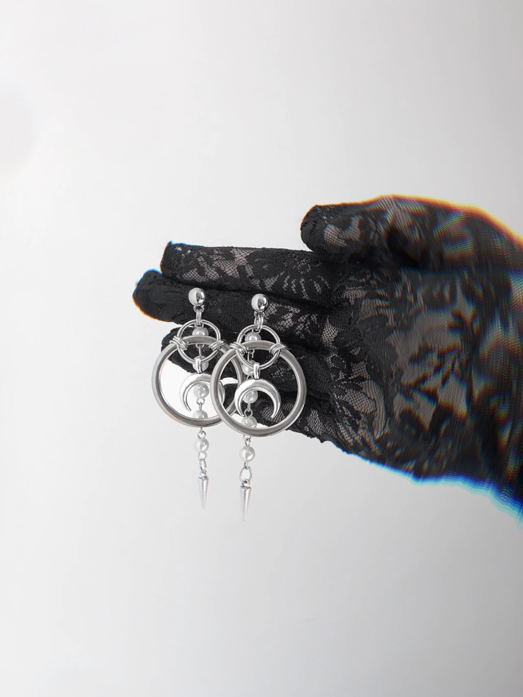 Carregado de simbolismo e estilo, o Luna Mystica une formas geométricas com elementos que remetem ao universo místico. As argolas abraçam a meia-lua, enquanto as pequenas pérolas e spikes criam contraste entre delicadeza e ousadia. O resultado é um brinco de presença, que se move junto com você e chama atenção trazendo um ponto de luz para o look.