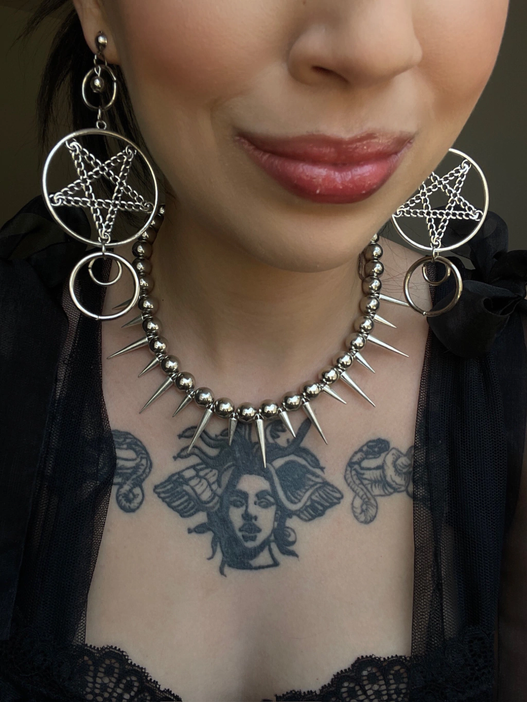O Brinco Ritual, é um super max brinco para as trevosas que amam um pentagrama! Ele é mega imponente e babadeiro, nada básico para causar com um look poderoso no rolê!!