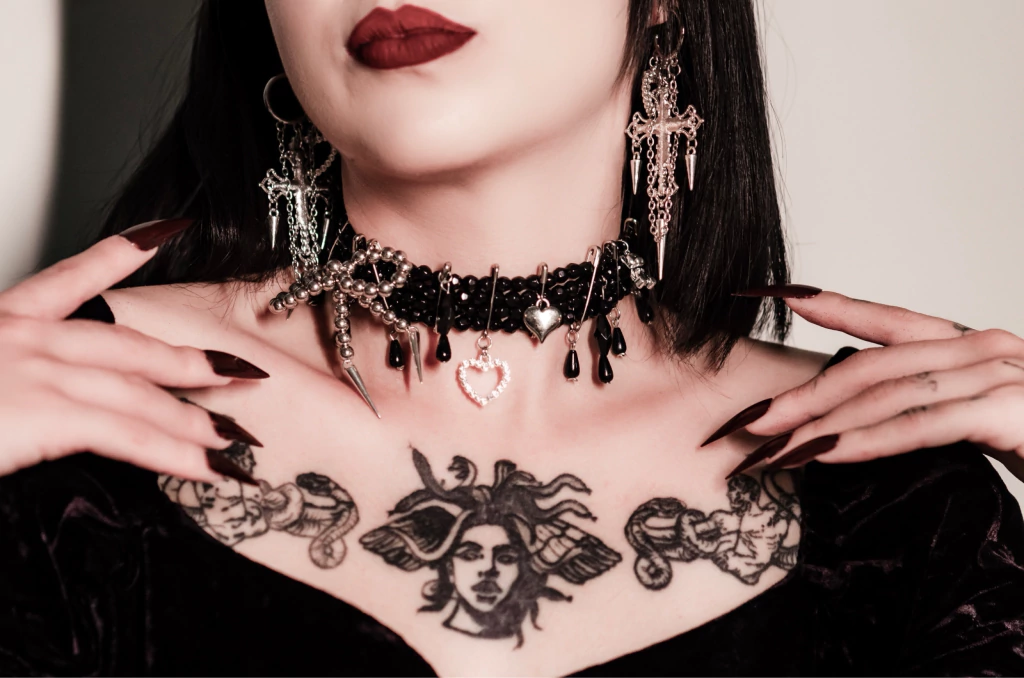 Uma choker feita para quem curte detalhes diferentes e não abre mão de um toque dramático na medida.